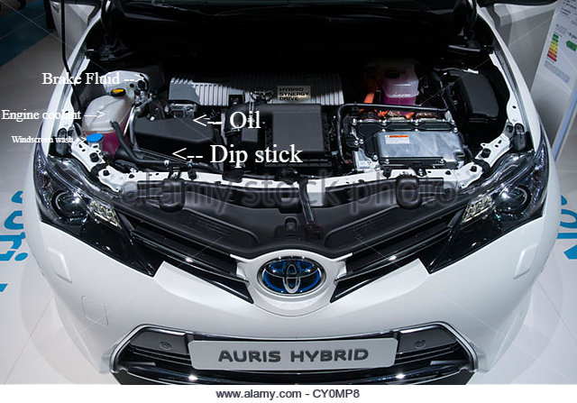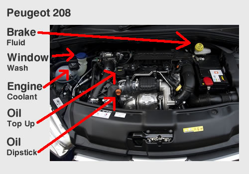 Identify Dipstick. Take it out, wipe with a rag, reinsert & take it out again, check oil level is between max/min marks.